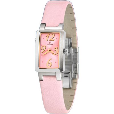 Questo cinturino Festina è fatto in pelle ed è collegato all'orologio per mezzo di perni a molla. Il cinturino ha una larghezza di 14 mm. Il cinturino non ha montatura dritta, il che significa che questo cinturino è adatto solo per gli orologi elencati di seguito.