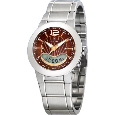Questo cinturino Festina è fatto in acciaio inox ed è collegato all'orologio per mezzo di perni a molla. Il cinturino ha una larghezza di 25 mm e si chiude a mezzo di chiusura a farfalla con bottoni. Il cinturino non ha montatura dritta, il che significa che questo cinturino è adatto solo per gli orologi elencati di seguito.