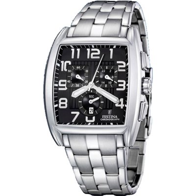 Questo cinturino Festina è fatto in acciaio inox ed è collegato all'orologio per mezzo di perni a molla. Il cinturino ha una larghezza di 24 mm e si chiude a mezzo di chiusura deployante con bottoni e sicurezza. Il cinturino non ha montatura dritta, il che significa che questo cinturino è adatto solo per gli orologi elencati di seguito.