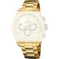 Questo cinturino Festina è fatto in acciaio inox ed è collegato all'orologio per mezzo di perni a molla. Il cinturino ha una larghezza di 22 mm e si chiude a mezzo di chiusura deployante con sicurezza. Il cinturino non ha montatura dritta, il che significa che questo cinturino è adatto solo per gli orologi elencati di seguito.