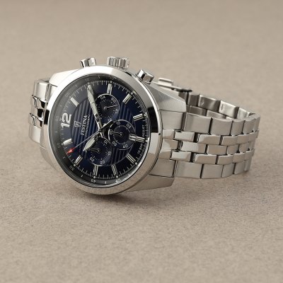 Questo orologio Festina ha una cassa in Inox con un diametro di 43.8 mm ed è dotato di un cinturino in Inox. All'interno della cassa si trova un movimento di Miyota e l'orologio è dotato di un cristallo di Minerale.