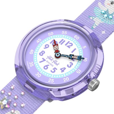Questo orologio Flik Flak ha una cassa in Plastica di origine biologica con un diametro di 30 mm ed è dotato di un cinturino in Tessuto. All'interno della cassa si trova un movimento di ETA e l'orologio è dotato di un cristallo di Acrilico.