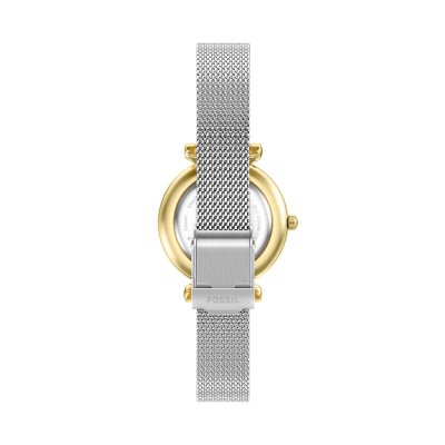 Questo orologio Fossil ha una cassa in Inox con un diametro di 28 mm ed è dotato di un cinturino in Inox. All'interno della cassa si trova un movimento di Seiko Instruments Inc. e l'orologio è dotato di un cristallo di Minerale.