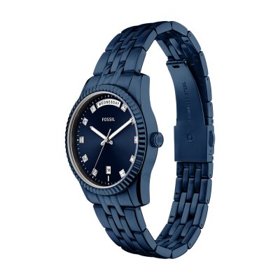 Questo orologio Fossil ha una cassa in Inox con un diametro di 34 mm ed è dotato di un cinturino in Inox. All'interno della cassa si trova un movimento di Seiko Instruments Inc. e l'orologio è dotato di un cristallo di Minerale.