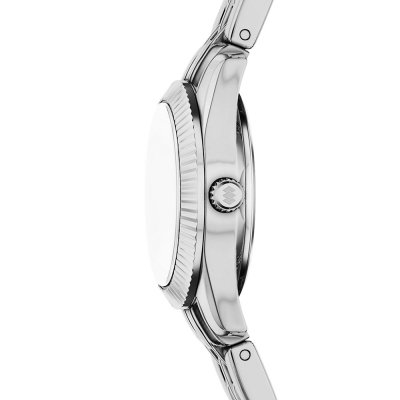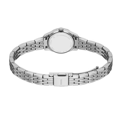 Questo orologio Fossil ha una cassa in Inox con un diametro di 20 mm ed è dotato di un cinturino in Inox. All'interno della cassa si trova un movimento di Seiko Instruments Inc. e l'orologio è dotato di un cristallo di Minerale.