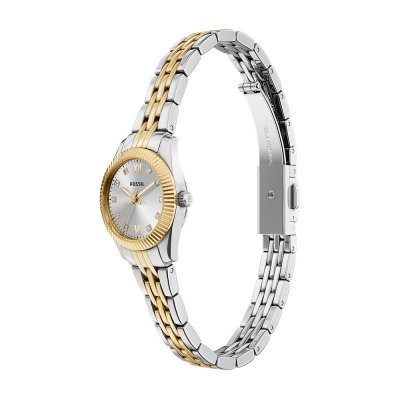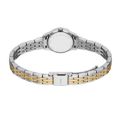 Questo orologio Fossil ha una cassa in Inox con un diametro di 20 mm ed è dotato di un cinturino in Inox. All'interno della cassa si trova un movimento di Seiko Instruments Inc. e l'orologio è dotato di un cristallo di Minerale.