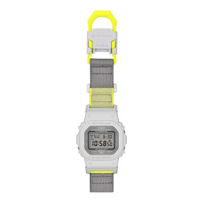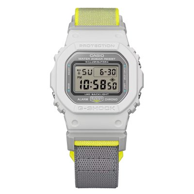 Questo orologio G-Shock ha una cassa in Plastica di origine biologica con un diametro di 42.8 mm ed è dotato di un cinturino in Tessuto. All'interno della cassa si trova un movimento di Casio e l'orologio è dotato di un cristallo di Minerale.