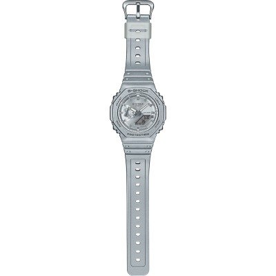 Questo orologio G-Shock ha una cassa in Resina rinforzata con carbonio con un diametro di 45.4 mm ed è dotato di un cinturino in Resina. All'interno della cassa si trova un movimento di Casio e l'orologio è dotato di un cristallo di Minerale.
