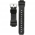 Questo cinturino G-Shock è fatto in resina ed è collegato all'orologio per mezzo di perni a molla. Il cinturino ha una larghezza di 26 mm e si chiude a mezzo di fibbia. Il cinturino non ha montatura dritta, il che significa che questo cinturino è adatto solo per gli orologi elencati di seguito.