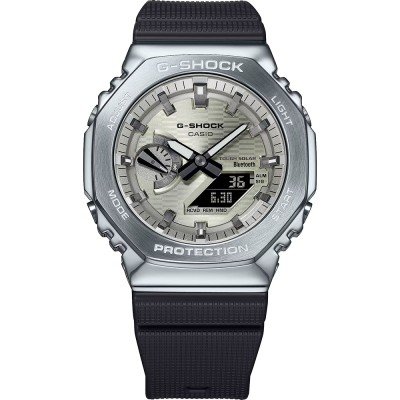 Questo orologio G-Shock ha una cassa in Acciaio inossidabile e plastica con un diametro di 44.4 mm ed è dotato di un cinturino in Plastica di origine biologica. All'interno della cassa si trova un movimento di Casio e l'orologio è dotato di un cristallo di Minerale.