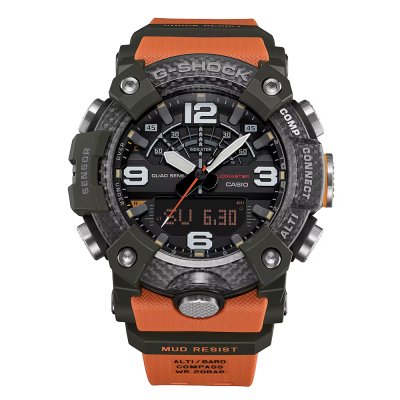 Questo orologio G-Shock ha una cassa in Resina rinforzata con carbonio con un diametro di 51.3 mm ed è dotato di un cinturino in Plastica di origine biologica. All'interno della cassa si trova un movimento di Casio e l'orologio è dotato di un cristallo di Minerale.