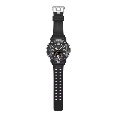 Questo orologio G-Shock ha una cassa in Resina rinforzata con carbonio con un diametro di 51.3 mm ed è dotato di un cinturino in Plastica di origine biologica. All'interno della cassa si trova un movimento di Casio e l'orologio è dotato di un cristallo di Minerale.
