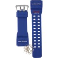 Questo cinturino G-Shock è fatto in resina ed è collegato all'orologio per mezzo di perni a molla. Il cinturino ha una larghezza di 28 mm e si chiude a mezzo di fibbia. Il cinturino non ha montatura dritta, il che significa che questo cinturino è adatto solo per gli orologi elencati di seguito.