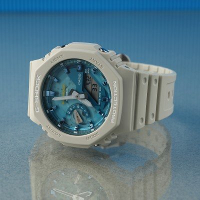 Questo orologio G-Shock ha una cassa in Plastica di origine biologica con un diametro di 45.4 mm ed è dotato di un cinturino in Plastica di origine biologica. All'interno della cassa si trova un movimento di Casio e l'orologio è dotato di un cristallo di Minerale.