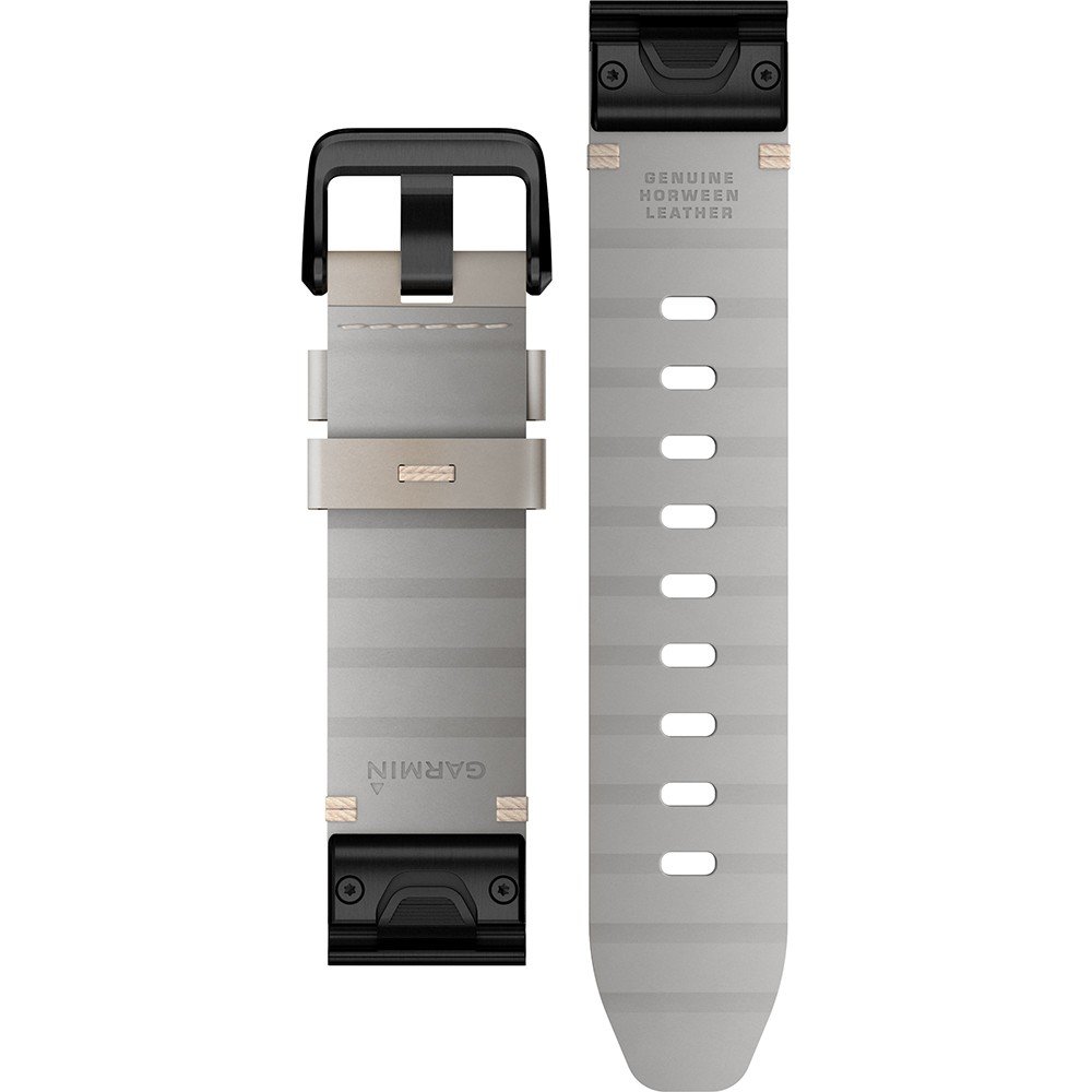 Questo cinturino Garmin è fatto in pelle ed è collegato all'orologio per mezzo di quickFit. Il cinturino ha una larghezza di 20 mm e si chiude a mezzo di fibbia. Il cinturino ha un attacco dritto, il che significa che questo cinturino è adatto a tutti gli orologi di Garmin con attacco dritto.