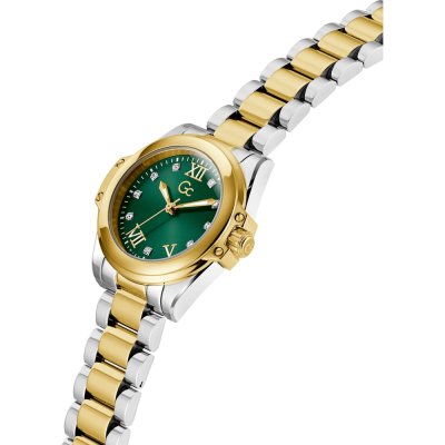 Questo orologio GC ha una cassa in Inox con un diametro di 30 mm ed è dotato di un cinturino in Inox. All'interno della cassa si trova un movimento di Ronda e l'orologio è dotato di un cristallo di Cristallo rivestito in zaffiro.
