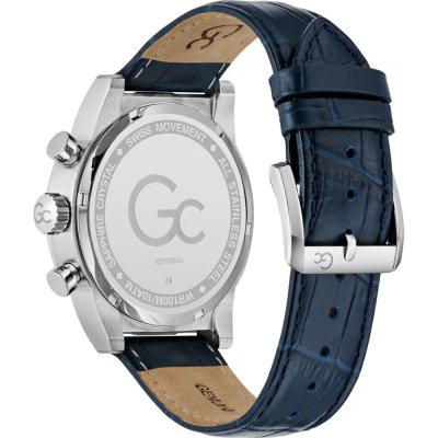 Questo orologio GC ha una cassa in Inox con un diametro di 42 mm ed è dotato di un cinturino in Pelle. All'interno della cassa si trova un movimento di Ronda e l'orologio è dotato di un cristallo di Zaffiro.