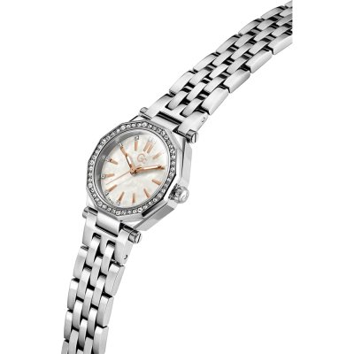 Questo orologio GC ha una cassa in Inox con un diametro di 26 mm ed è dotato di un cinturino in Inox. All'interno della cassa si trova un movimento di Ronda e l'orologio è dotato di un cristallo di Cristallo rivestito in zaffiro.