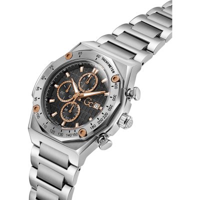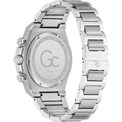 Questo orologio GC ha una cassa in Inox con un diametro di 45 mm ed è dotato di un cinturino in Inox. All'interno della cassa si trova un movimento di e l'orologio è dotato di un cristallo di Zaffiro.