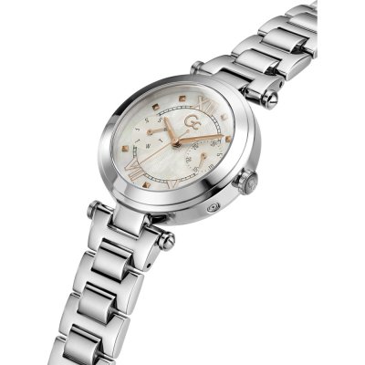 Questo orologio GC ha una cassa in Inox con un diametro di 32 mm ed è dotato di un cinturino in Inox. All'interno della cassa si trova un movimento di Ronda e l'orologio è dotato di un cristallo di Cristallo rivestito in zaffiro.