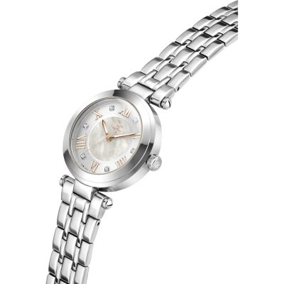 Questo orologio GC ha una cassa in Inox con un diametro di 32 mm ed è dotato di un cinturino in Inox. All'interno della cassa si trova un movimento di Ronda e l'orologio è dotato di un cristallo di Zaffiro.