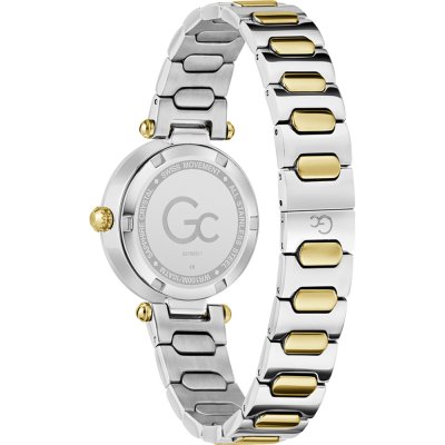 Questo orologio GC ha una cassa in Inox con un diametro di 30 mm ed è dotato di un cinturino in Inox. All'interno della cassa si trova un movimento di Ronda e l'orologio è dotato di un cristallo di Zaffiro.
