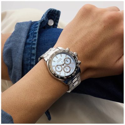 L'orologio è impermeabile a 5ATM. Questo significa che l'orologio è adatto per la doccia. L'orologio è fornito con 2 Anni di garanzia.