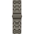 Questo cinturino Guess è fatto in acciaio inox ed è collegato all'orologio per mezzo di perni a molla. Il cinturino ha una larghezza di 24 mm e si chiude a mezzo di chiusura deployante con bottoni. Il cinturino non ha montatura dritta, il che significa che questo cinturino è adatto solo per gli orologi elencati di seguito.
