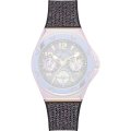 Questo cinturino Guess è fatto in silicone ed è collegato all'orologio per mezzo di perni a molla. Il cinturino ha una larghezza di 23 mm e si chiude a mezzo di fibbia. Il cinturino non ha montatura dritta, il che significa che questo cinturino è adatto solo per gli orologi elencati di seguito.