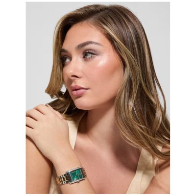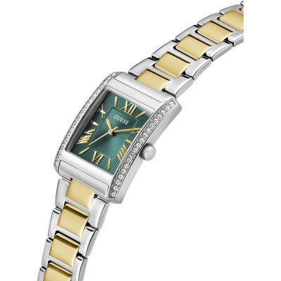 Questo orologio Guess ha una cassa in Inox con un diametro di 27 mm ed è dotato di un cinturino in Inox. All'interno della cassa si trova un movimento di Seiko e l'orologio è dotato di un cristallo di Minerale.