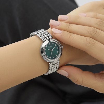 Questo orologio Guess ha una cassa in Inox con un diametro di 28 mm ed è dotato di un cinturino in Inox.
