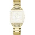 Questo cinturino Guess è fatto in acciaio inox ed è collegato all'orologio per mezzo di perni a molla. Il cinturino ha una larghezza di 20 mm e si chiude a mezzo di chiusura deployante con bottoni. Il cinturino non ha montatura dritta, il che significa che questo cinturino è adatto solo per gli orologi elencati di seguito.