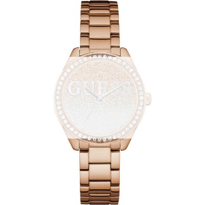Questo cinturino Guess è fatto in acciaio inox ed è collegato all'orologio per mezzo di perni a molla. Il cinturino ha una larghezza di 16 mm e si chiude a mezzo di chiusura deployante. Il cinturino non ha montatura dritta, il che significa che questo cinturino è adatto solo per gli orologi elencati di seguito.