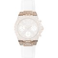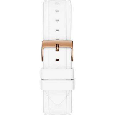 Questo cinturino Guess è fatto in silicone ed è collegato all'orologio per mezzo di perni a molla. Il cinturino ha una larghezza di 23 mm e si chiude a mezzo di fibbia. Il cinturino non ha montatura dritta, il che significa che questo cinturino è adatto solo per gli orologi elencati di seguito.