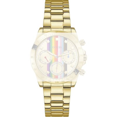 Questo cinturino Guess è fatto in acciaio inox ed è collegato all'orologio per mezzo di perni a molla. Il cinturino ha una larghezza di 20 mm e si chiude a mezzo di chiusura deployante con sicurezza. Il cinturino ha un attacco dritto, il che significa che questo cinturino è adatto a tutti gli orologi di Guess con attacco dritto.