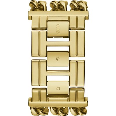 Questo cinturino Guess è fatto in acciaio inox ed è collegato all'orologio per mezzo di perni in acciaio. Il cinturino ha una larghezza di 38 mm e si chiude a mezzo di chiusura a gioiello. Il cinturino non ha montatura dritta, il che significa che questo cinturino è adatto solo per gli orologi elencati di seguito.