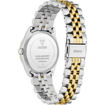 Questo orologio Guess ha una cassa in Inox con un diametro di 34 mm ed è dotato di un cinturino in Inox.