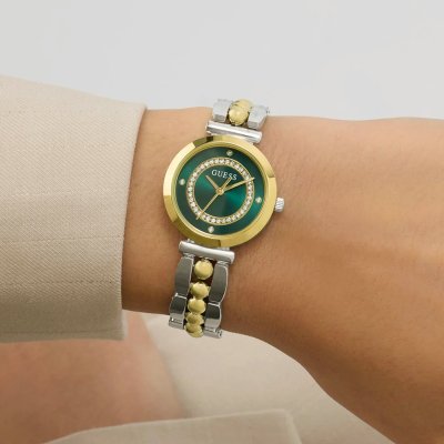 Questo orologio Guess ha una cassa in Inox con un diametro di 26 mm ed è dotato di un cinturino in Inox. All'interno della cassa si trova un movimento di Seiko e l'orologio è dotato di un cristallo di Minerale.