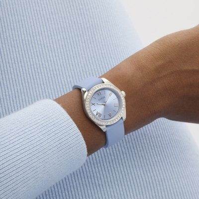 Questo orologio Guess ha una cassa in Inox con un diametro di 30 mm ed è dotato di un cinturino in gomma. All'interno della cassa si trova un movimento di Seiko e l'orologio è dotato di un cristallo di Minerale.