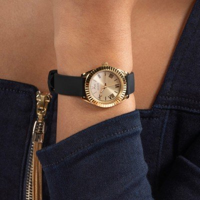 Questo orologio Guess ha una cassa in Inox con un diametro di 30 mm ed è dotato di un cinturino in gomma.