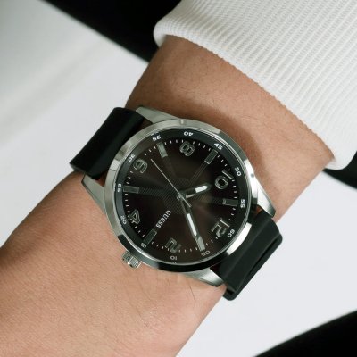 Questo orologio Guess ha una cassa in Inox con un diametro di 42 mm ed è dotato di un cinturino in gomma.