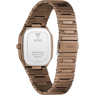 Questo orologio Guess ha una cassa in Inox con un diametro di 35 mm ed è dotato di un cinturino in Inox. All'interno della cassa si trova un movimento di Miyota e l'orologio è dotato di un cristallo di Minerale.
