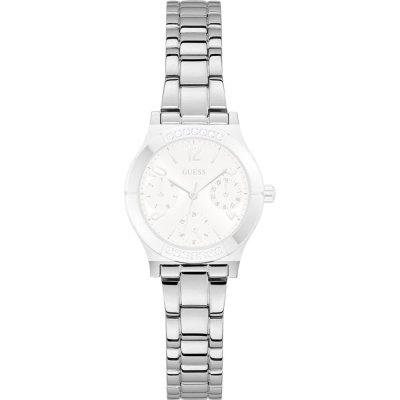 Questo cinturino Guess è fatto in metallo ed è collegato all'orologio per mezzo di perni a molla. Il cinturino ha una larghezza di 14 mm e si chiude a mezzo di chiusura deployante con sicurezza. Il cinturino non ha montatura dritta, il che significa che questo cinturino è adatto solo per gli orologi elencati di seguito.