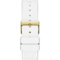 Questo cinturino Guess è fatto in silicone ed è collegato all'orologio per mezzo di perni a molla. Il cinturino ha una larghezza di 24 mm e si chiude a mezzo di fibbia. Il cinturino non ha montatura dritta, il che significa che questo cinturino è adatto solo per gli orologi elencati di seguito.