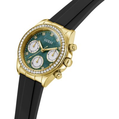 Questo orologio Guess ha una cassa in Inox con un diametro di 36 mm ed è dotato di un cinturino in gomma. All'interno della cassa si trova un movimento di Seiko Instruments Inc. e l'orologio è dotato di un cristallo di Minerale.