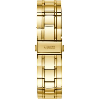 Questo cinturino Guess è fatto in acciaio inox ed è collegato all'orologio per mezzo di perni a molla. Il cinturino ha una larghezza di 20 mm e si chiude a mezzo di chiusura deployante con bottoni. Il cinturino non ha montatura dritta, il che significa che questo cinturino è adatto solo per gli orologi elencati di seguito.