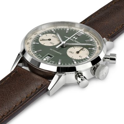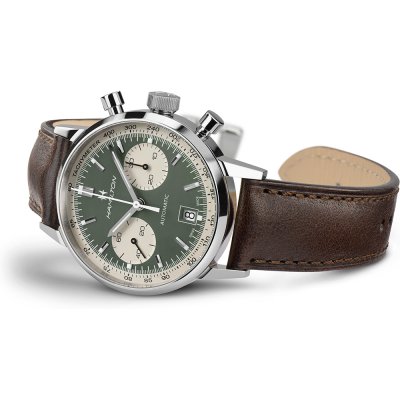 L'Intra-Matic Auto Chrono è un'interpretazione moderna di un orologio classico del catalogo Hamilton del 1968. Il design sportivo ma classico con i caratteristici quadranti crono è sorprendente ed elegante allo stesso tempo. L'orologio di ispirazione vintage è dotato di un cinturino in maglia di acciaio inossidabile finemente intrecciato o di un cinturino in morbida pelle per il massimo del comfort e dello stile.