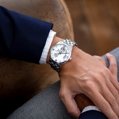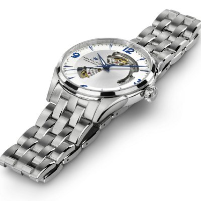 L'Hamilton Jazzmaster Viewmatic bilancia perfettamente abbigliamento e sport, combinando una cassa splendidamente rifinita con un mix di superfici lucide e spazzolate e un intrigante quadrante a cuore aperto che mostra gli elementi meccanici che battono sotto. I ritagli squisitamente eseguiti nel quadrante presentano una smussatura lucida che passa nettamente a un bordo interno spazzolato, indirizzando l'occhio al movimento automatico H-10. Questo movimento Hamilton molto preciso contiene una molla del bilanciere Nivachron non magnetica e ha una riserva di carica di non meno di 80 ore. Il Jazzmaster Viewmatic Open Heart Auto è disponibile in una gamma di colori e con casse da 40 mm e 36 mm, sia per uomo che per donna.