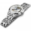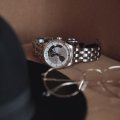 Una delle linee di orologi più distinte di Hamilton, il Jazzmaster è forse la più caratterizzata in termini di eleganza e raffinatezza, con finiture e design che tendono all'alto di gamma. Il modello "Open Heart" è caratterizzato da un quadrante ritagliato, che rivela le aree chiave del movimento sottostante. In questo modo la leggibilità dell'orologio rimane in gran parte intatta, ma conferisce anche all'orologio il suo aspetto caratteristico. Sono esposti alcuni rubini dell'orologio, il treno di ingranaggi, il cricchetto e il bilanciere. Il quadrante è a raggiera con indici a losanga applicati e lancette Dauphine, sotto un vetro zaffiro. Il movimento H-10 è l'affidabile cavallo di battaglia di Hamilton, con spirale Nivachron e riserva di carica di 80 ore.