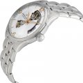 L'Hamilton Jazzmaster Viewmatic bilancia perfettamente abbigliamento e sport, combinando una cassa splendidamente rifinita con un mix di superfici lucide e spazzolate e un intrigante quadrante a cuore aperto che mostra gli elementi meccanici che battono sotto. I ritagli squisitamente eseguiti nel quadrante presentano una smussatura lucida che passa nettamente a un bordo interno spazzolato, indirizzando l'occhio al movimento automatico H-10. Questo movimento Hamilton molto preciso contiene una molla del bilanciere Nivachron non magnetica e ha una riserva di carica di non meno di 80 ore. Il Jazzmaster Viewmatic Open Heart Auto è disponibile in una gamma di colori e con casse da 40 mm e 36 mm, sia per uomo che per donna.
